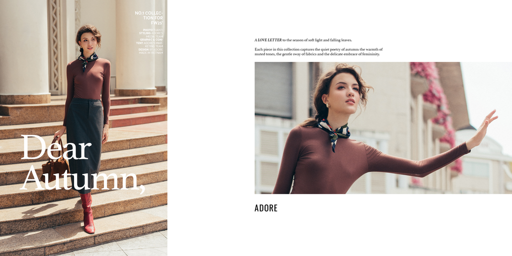 | Chapitre Doux là lời kể nhẹ như sương về những buổi sáng thu sang đẹp đến nao lòng, về vẻ nữ tính kín đáo mà vẫn rực rỡ theo cách rất riêng. Những lớp layering mềm mại và những gam màu trầm ấm được sắp đặt như những con chữ trong một cuốn nhật ký, mỗi outfit là một dòng cảm xúc, mỗi chất liệu là một hơi thở. Khi nàng khoác lên mình Chapitre Doux, đó là khoảnh khắc thời trang giao hòa cùng cảm xúc, một chương thật mềm, thật dịu để nàng viết tiếp câu chuyện của riêng mình. |