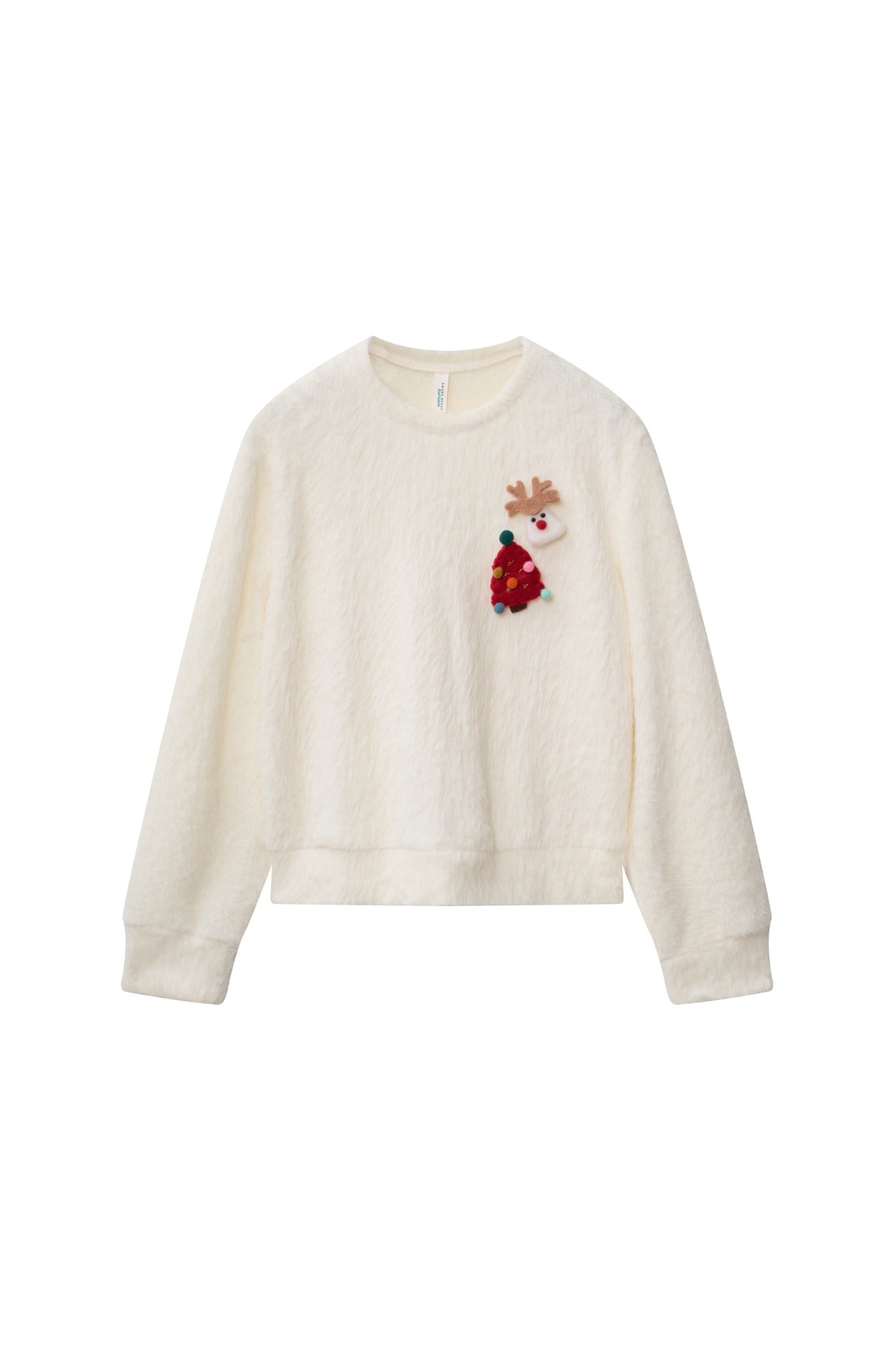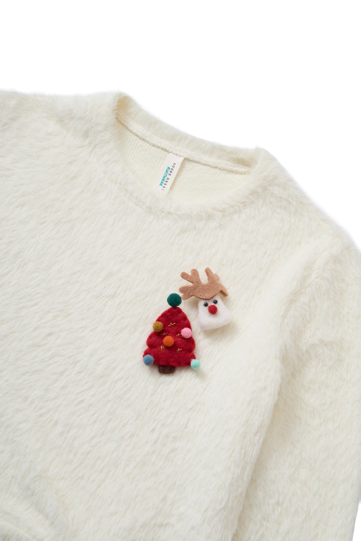 Áo len trắng sợi lông thỏ kèm pin trang trí