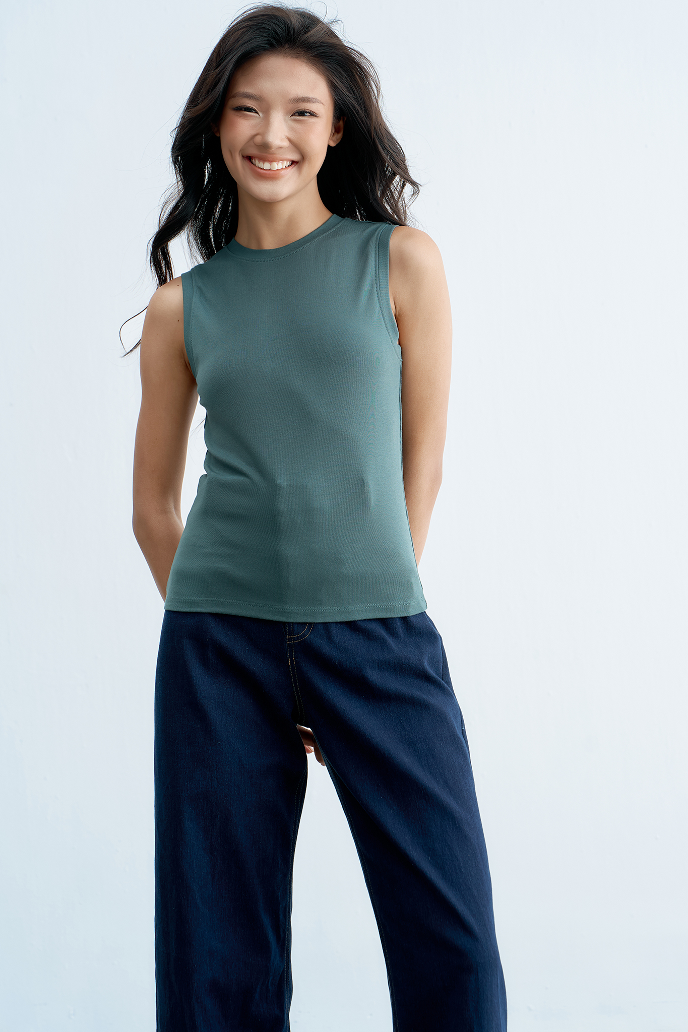 Áo tank top thun màu rêu hun