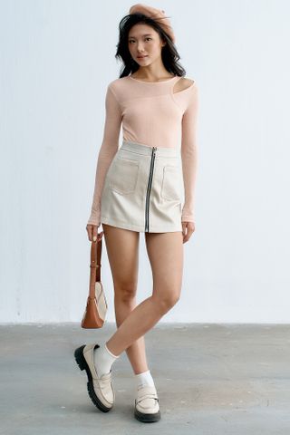 Chân váy mini A ánh silver khoá thân trước