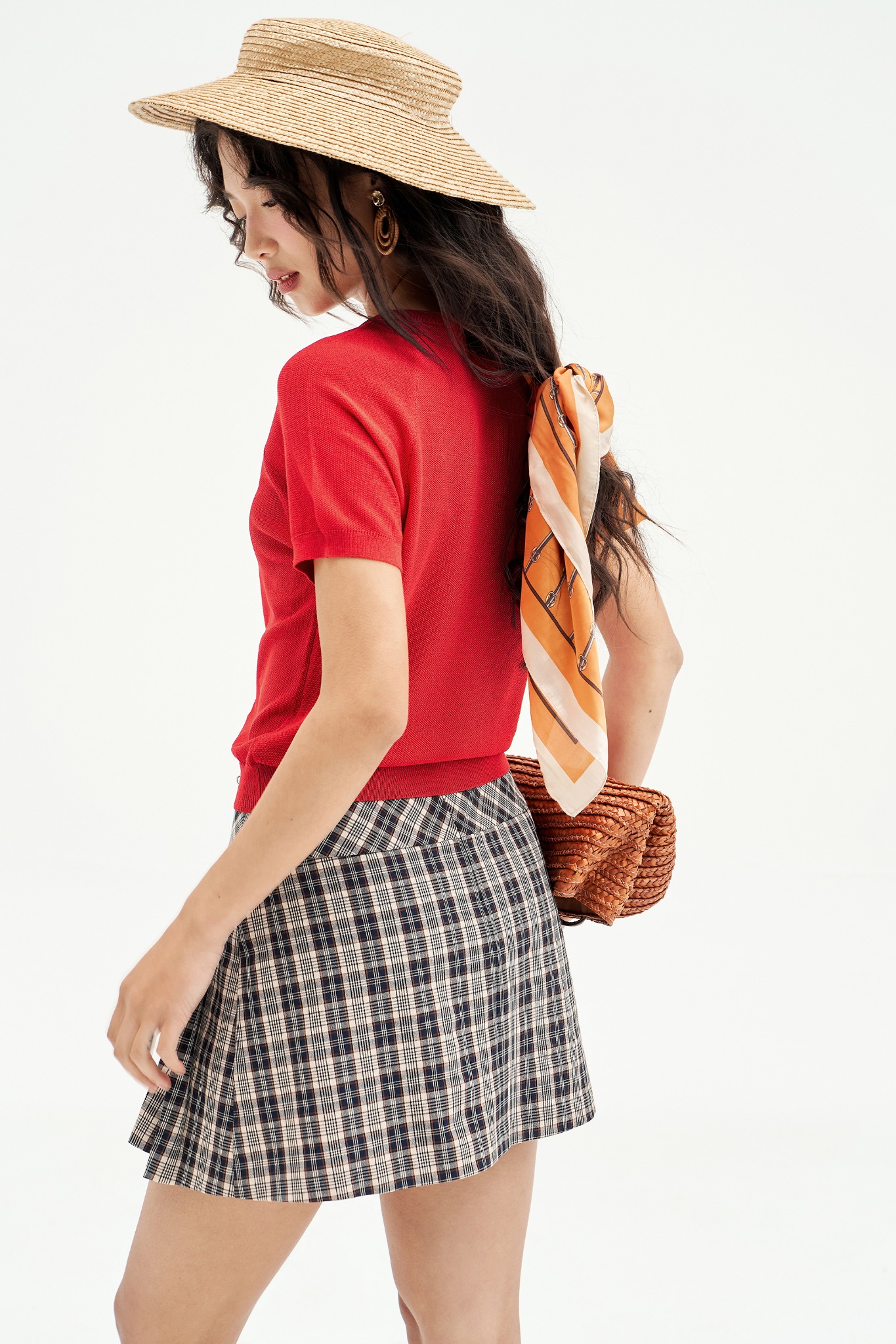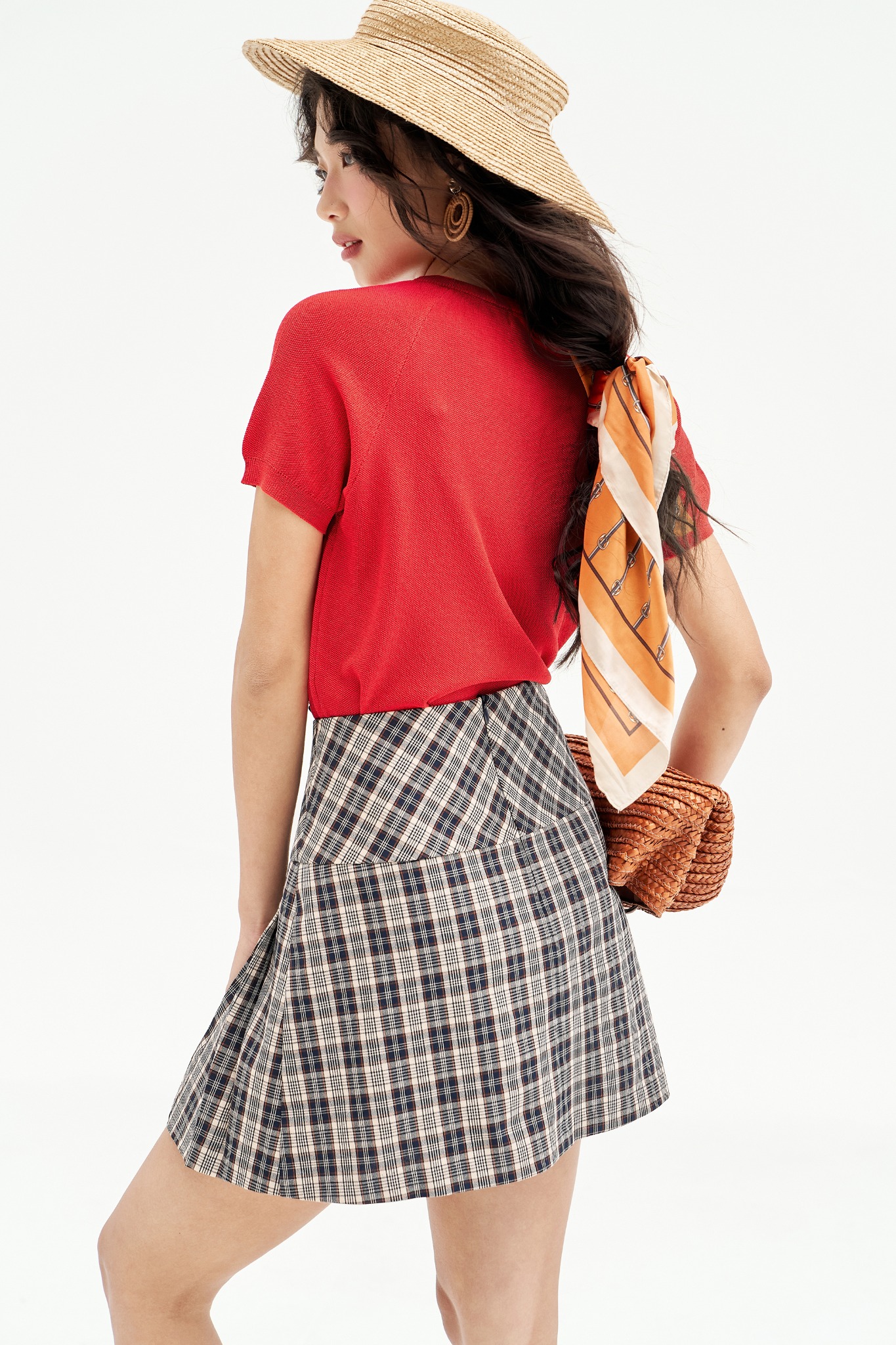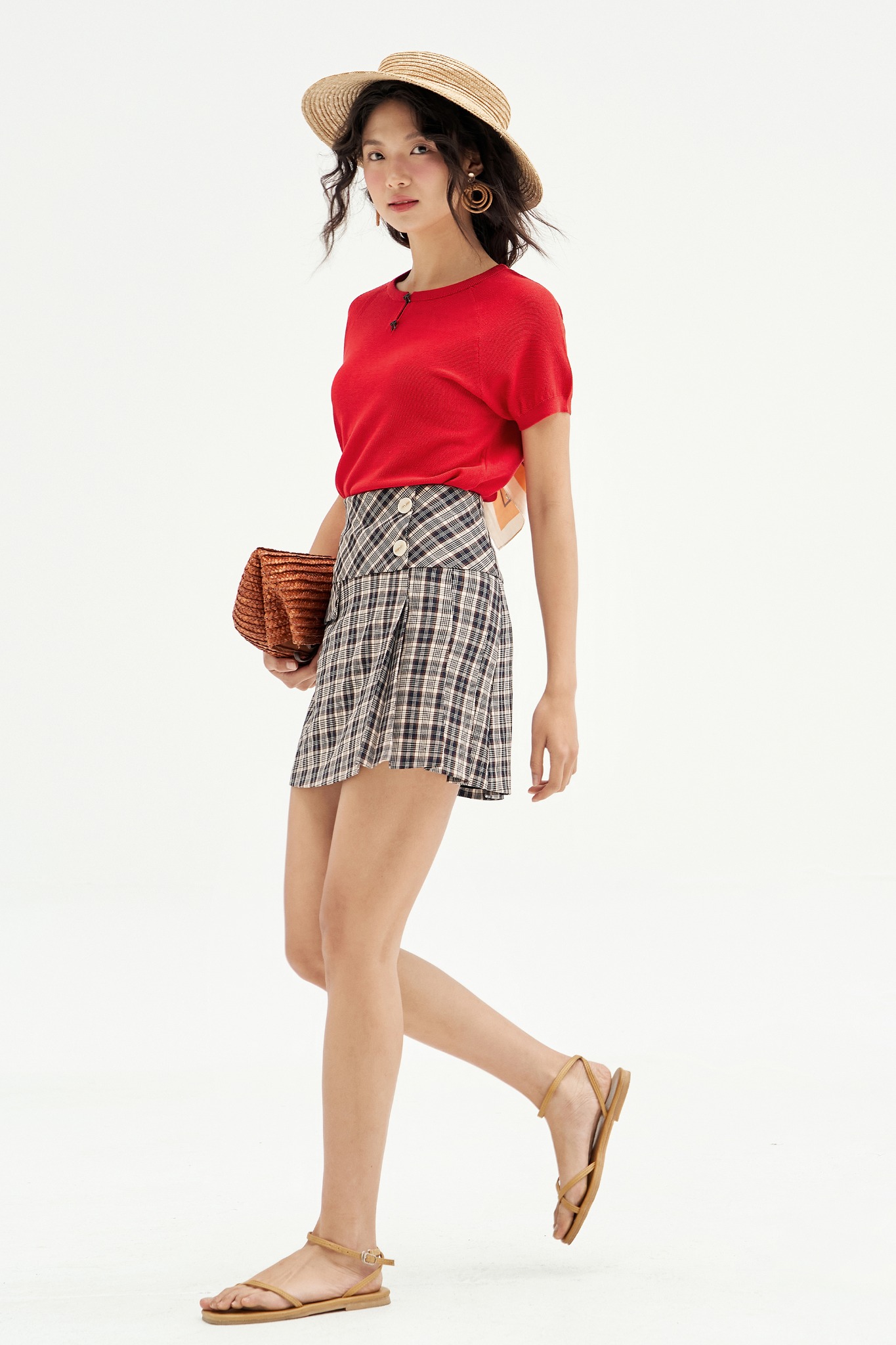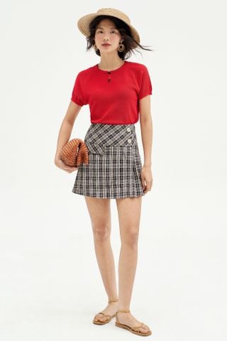 - FORM DÁNG: Chân váy mini xếp ly lệch