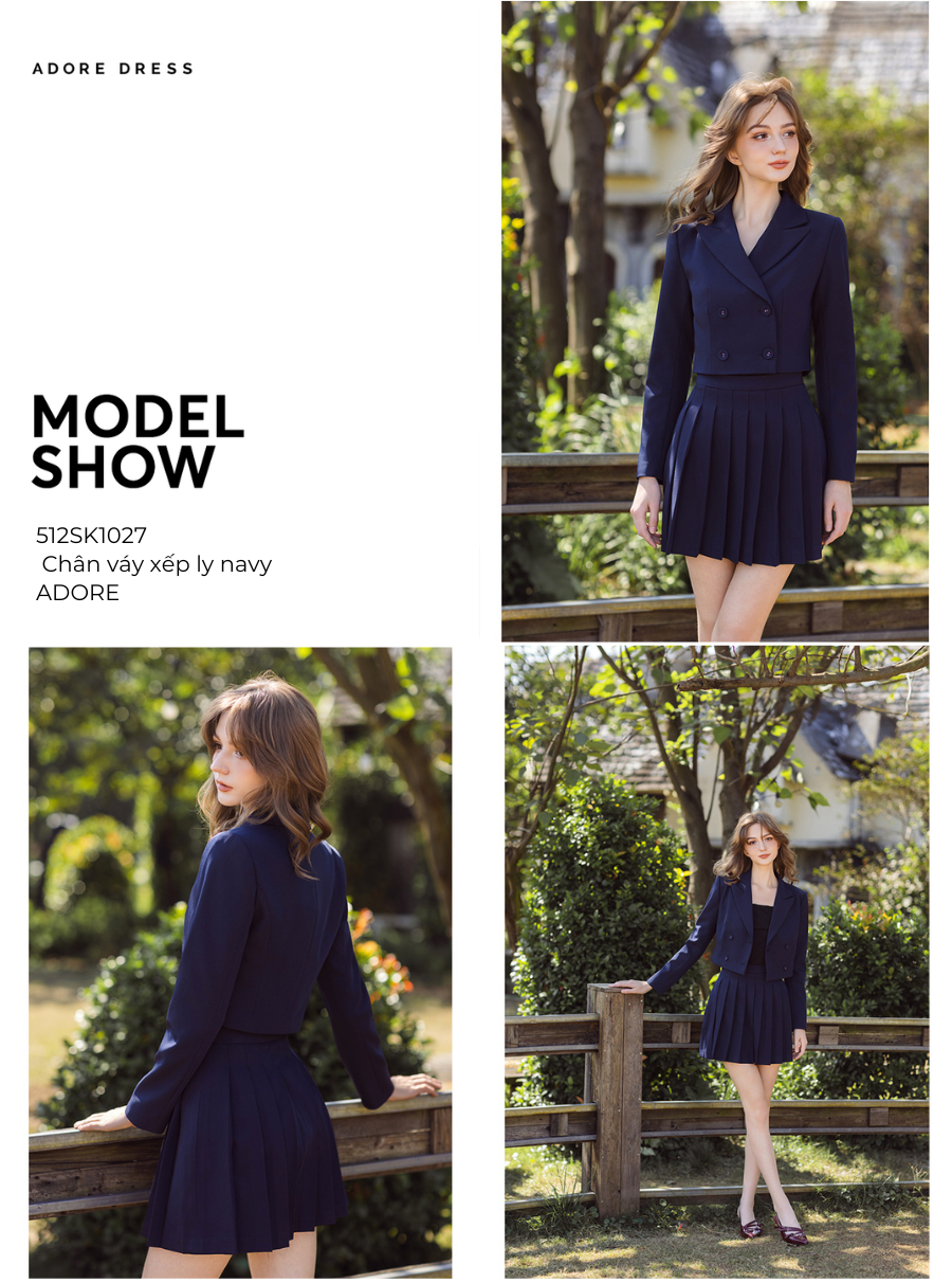 512SK1027 - Chân váy xếp ly navy Adore