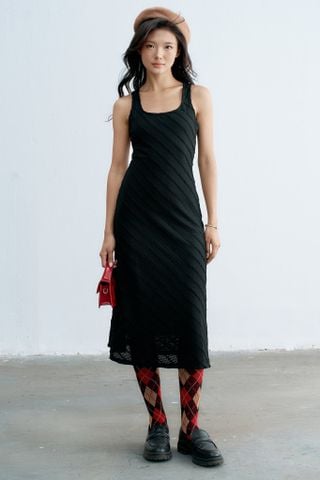 Đầm midi cổ U ren gân đen ( Form nhỏ)