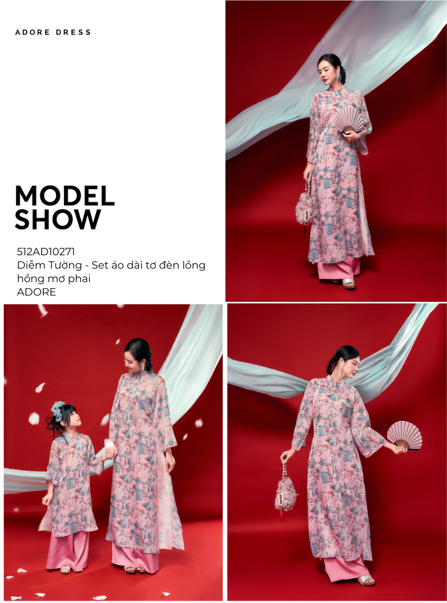 Diễm Tường - Set áo dài tơ đèn lồng hồng mơ phai Adore