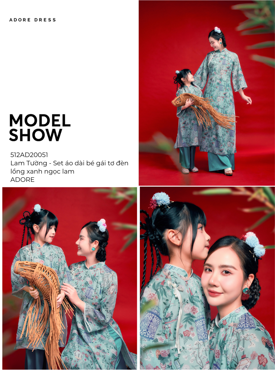 Lam Tường - Set áo dài bé gái tơ đèn lồng xanh ngọc lam Adore