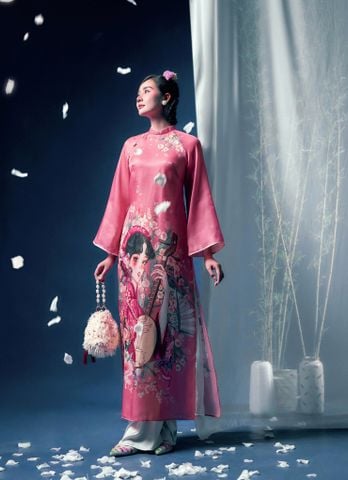 Nguyệt Cầm - Set áo dài tơ hồng Tường Vy Adore