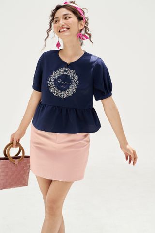 Peplum navy thêu vòng nguyệt quế