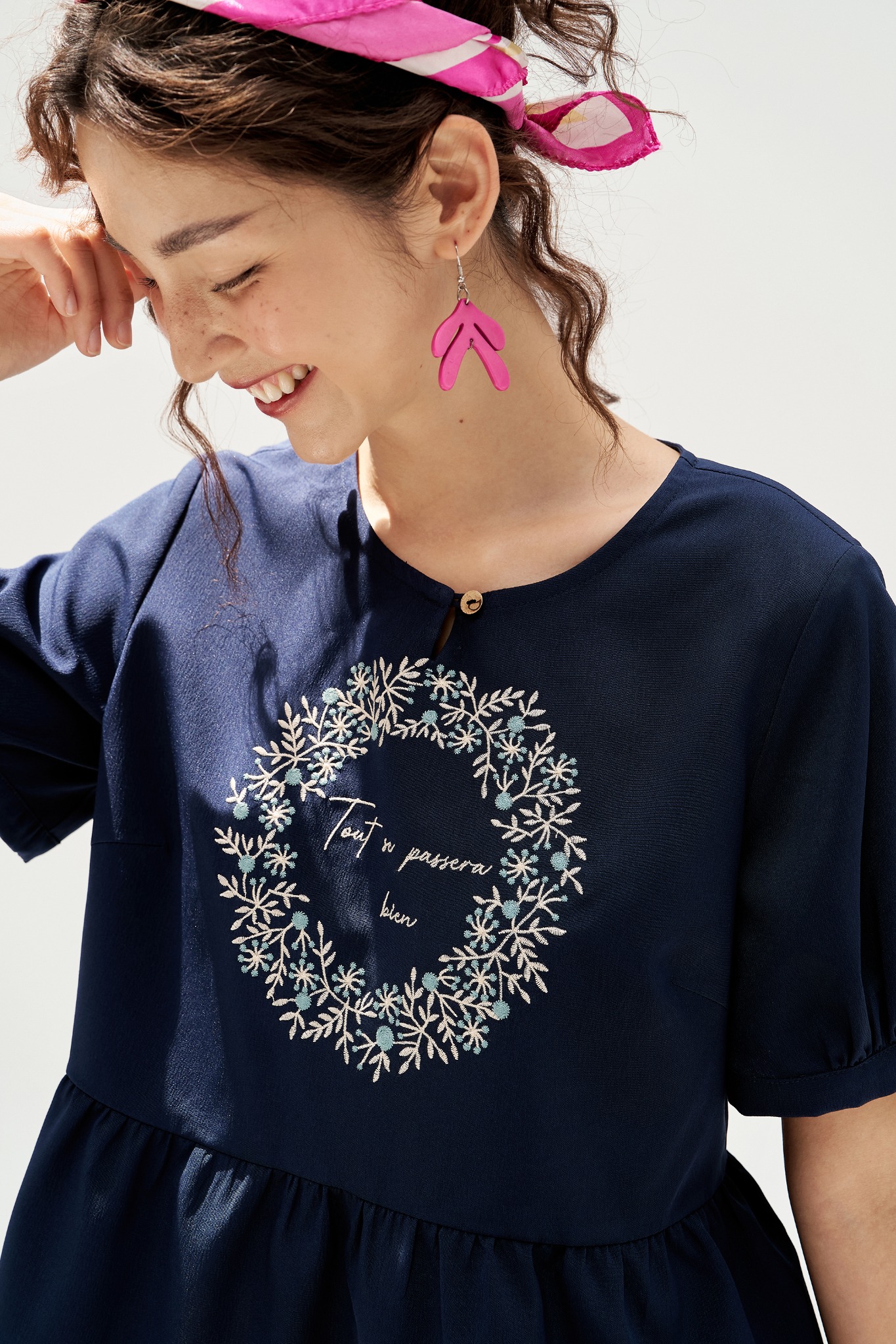 - DECOR: Thêu vòng nguyệt quế ở thân trước, dải hoa nhã nhặn mùa hè
