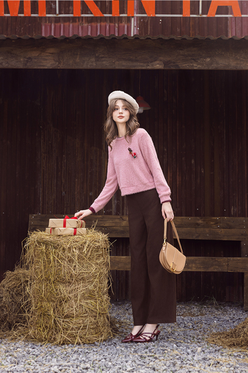Quần nhung tăm nâu cafe ống rộng