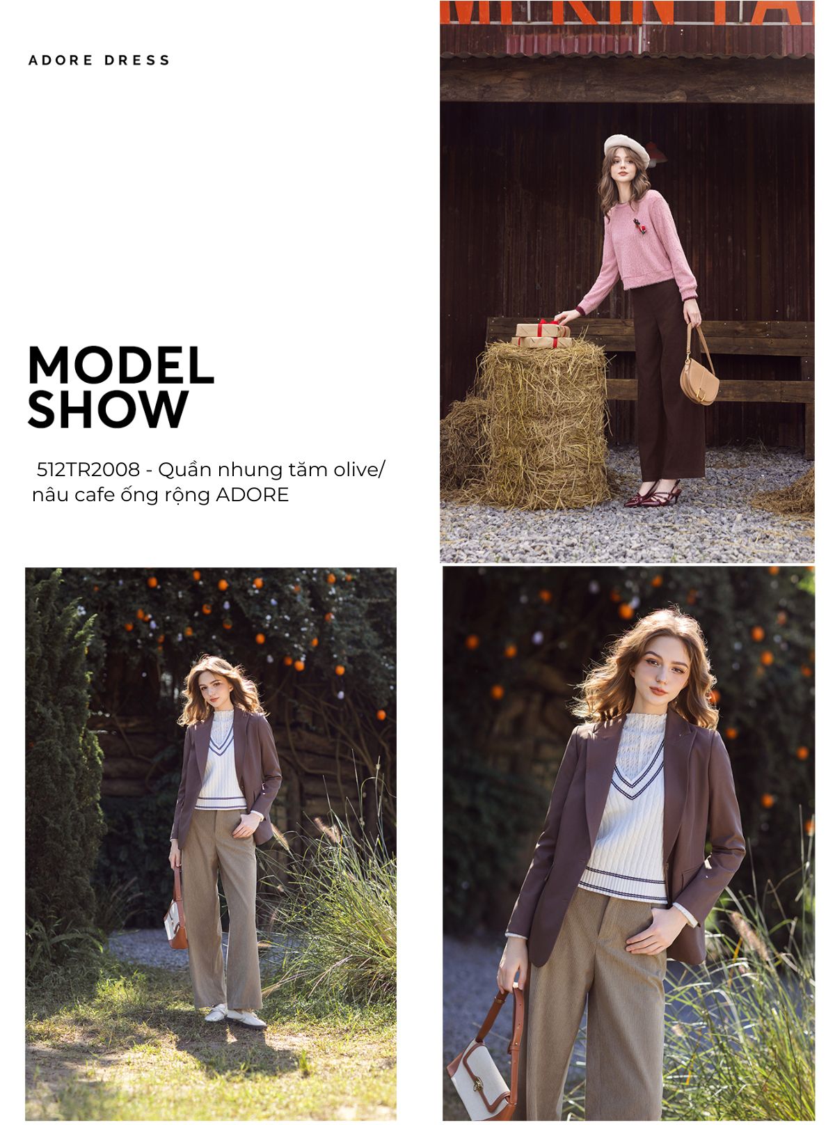 512TR2008  - Quần nhung tăm olive/ nâu cafe ống rộng ADORE