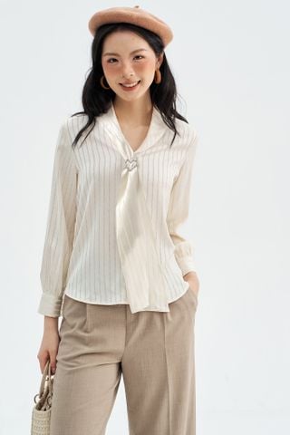 - FORM DÁNG: Sơ mi dáng basic cổ sam có dải dây nữ tính, mềm mại
